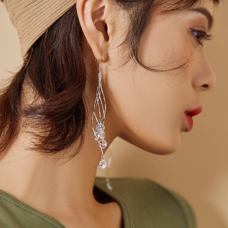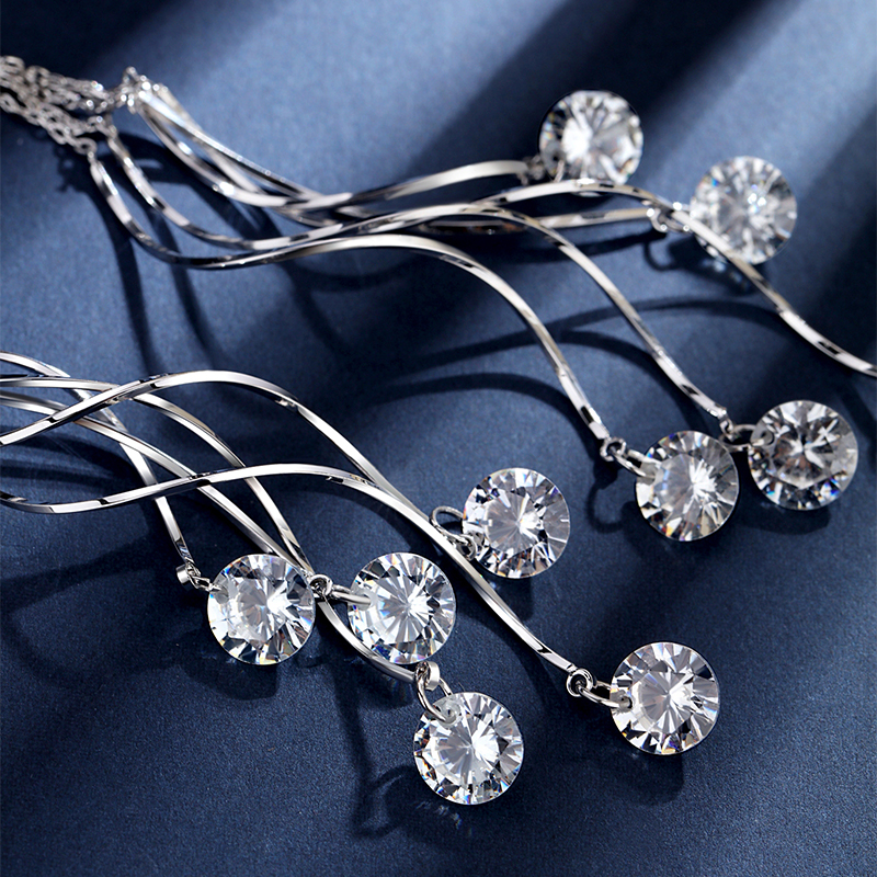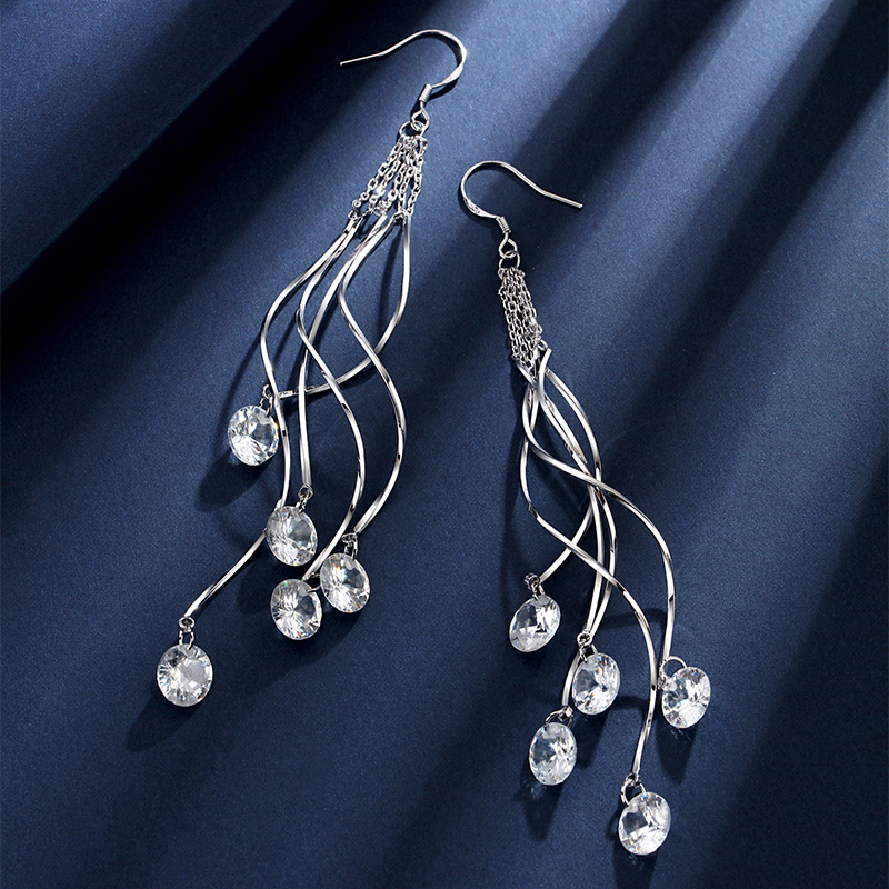 2023 New temperament long zircon water drop fashion 925 pure silver needle earrings are simple tide