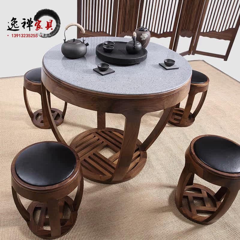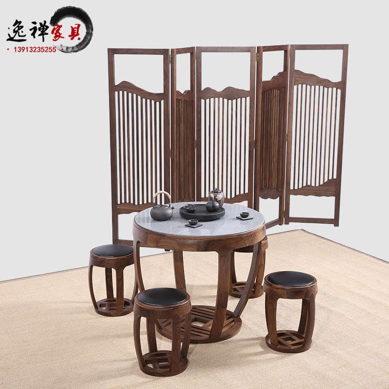 New Chinese style solid wood dining table and chairs creative screen round dining table modern dining table simple tea table Zen furniture customization