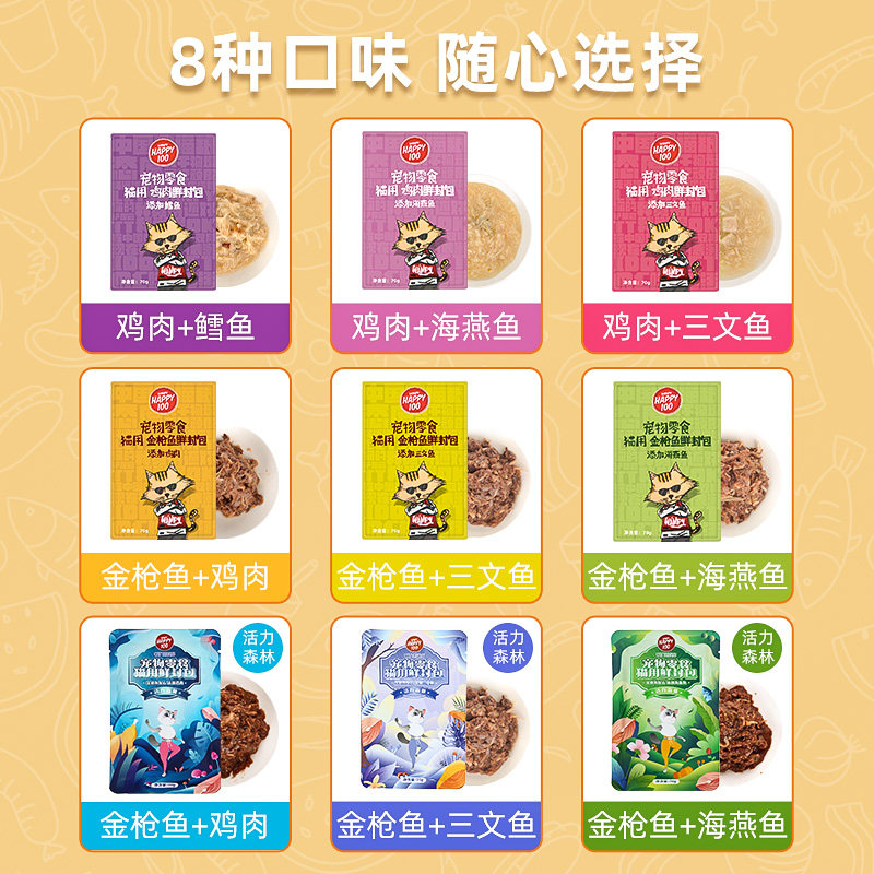 Mix Flavoured Fresh Enveloping 70g * 12 Package (Shop Long Recommended) Chicken Cod Fresh Enveloping 70g * 12 Package Chicken Salmon Fresh Enveloping 70g * 12 Tuna Salmon salmon