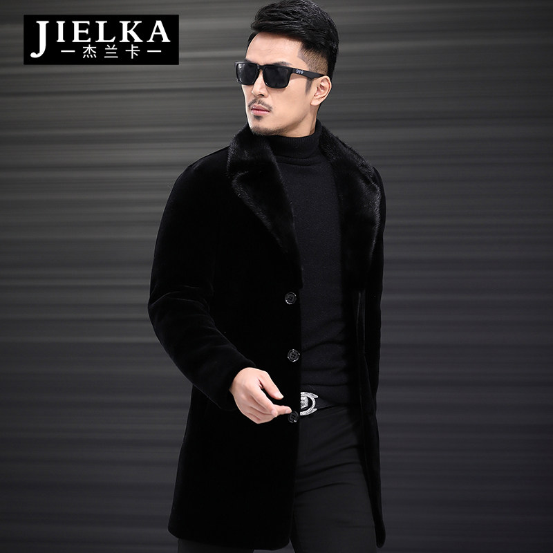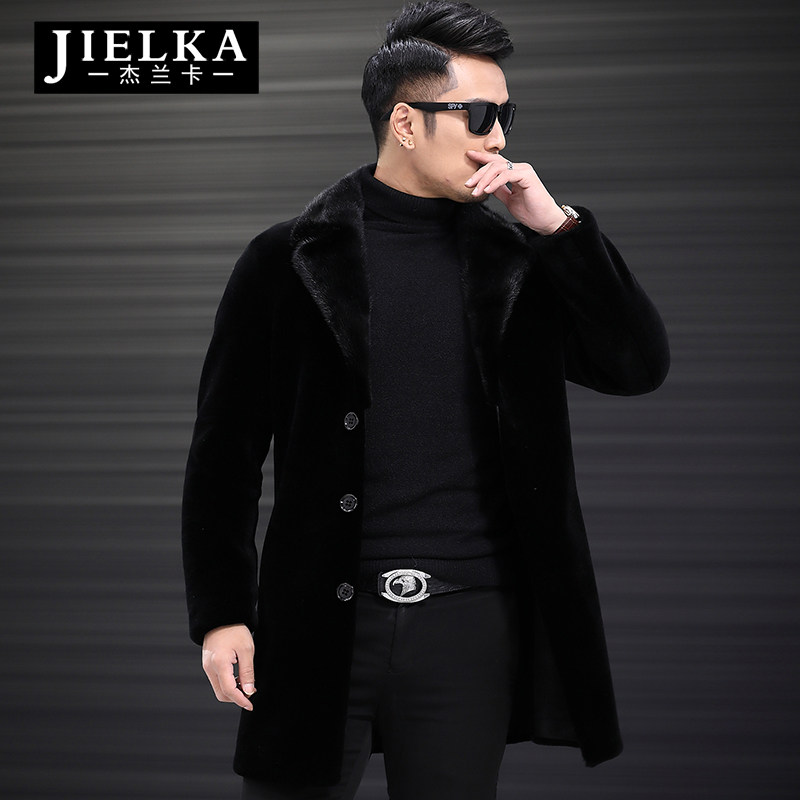 Haining leather leather mink lapel medium and long version of mink coat male fur sheep shearing male one-piece fur coat