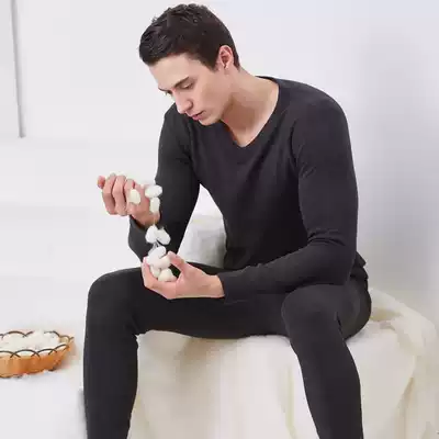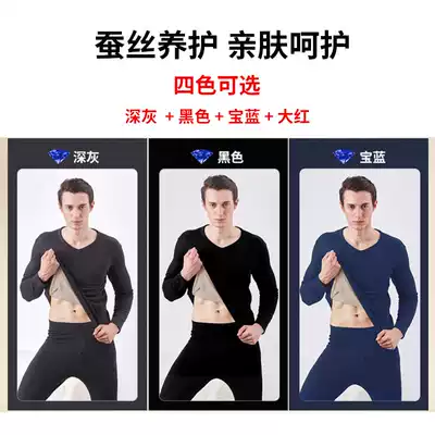 Blue diamond beauty silk hot clothes men winter no trace Fever v collar men's thermal underwear set plus velvet thickened