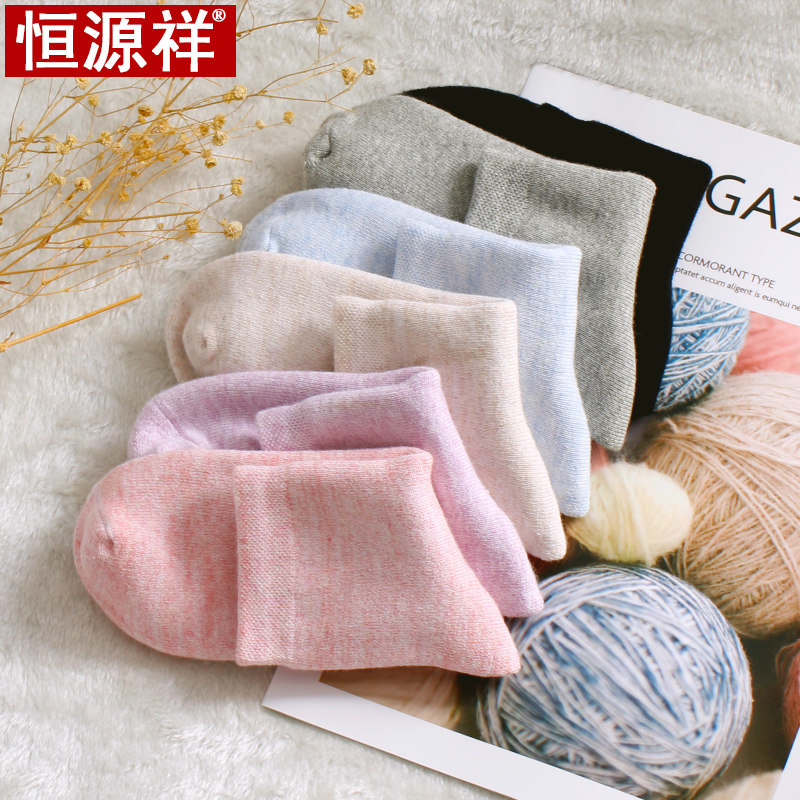 Hengyuanxiang pure cotton socks women's mid-tube socks Korean version of the college wind thickened warm towel stockings floor socks autumn and winter