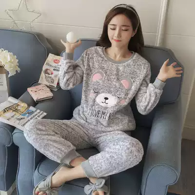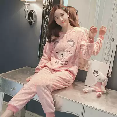 Coral velvet pajamas women's autumn and winter thickened velvet long sleeve suit two-piece cute student flannel home wear