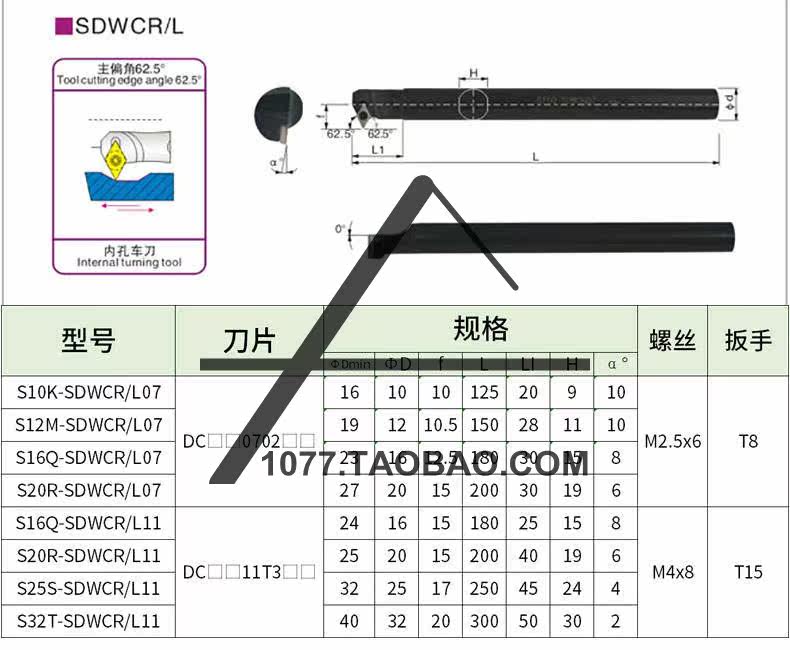 62 5 Degree Inner Hole Knife Rod CNC Knife Rod S12M 16Q 20R 25S-SDWCR07 R11 L07 L11
