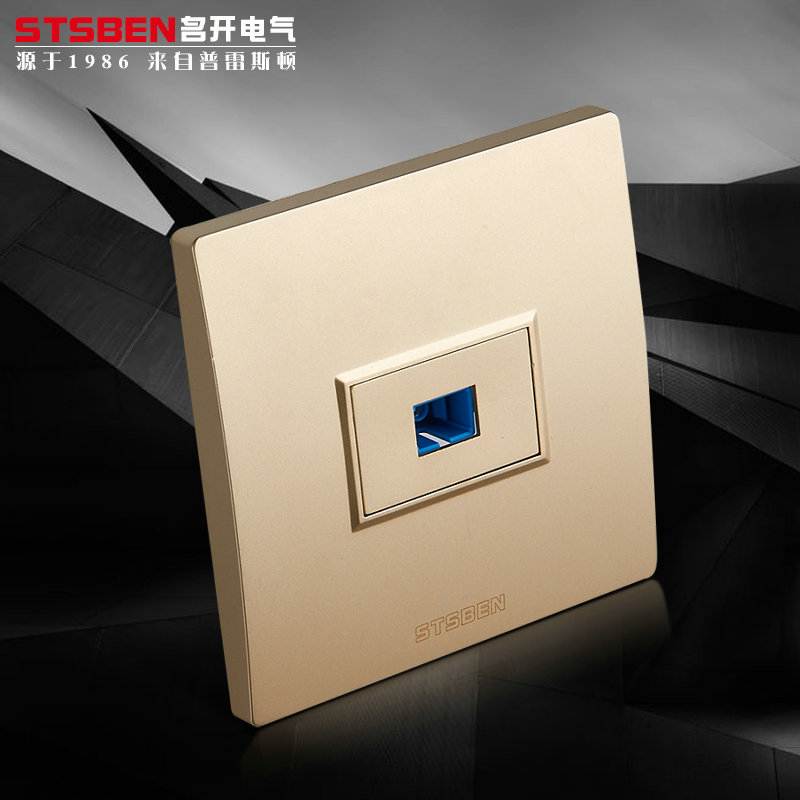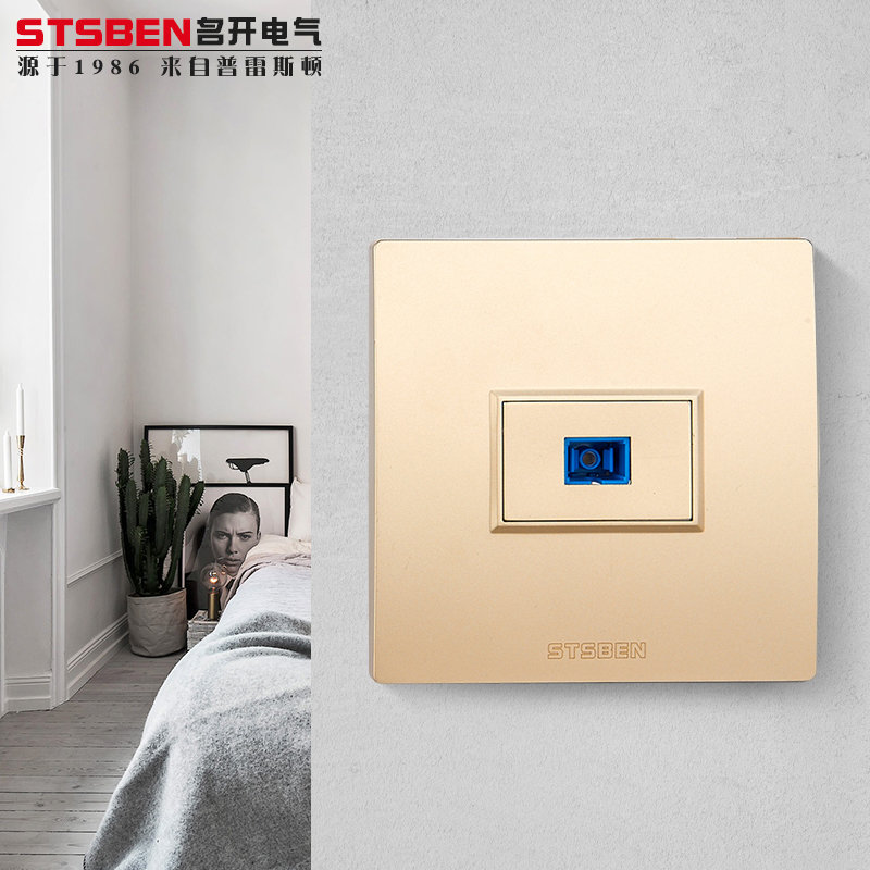 Mingkai electrical wall concealed two computer network fiber optic panel Champagne gold One SC fiber optic socket