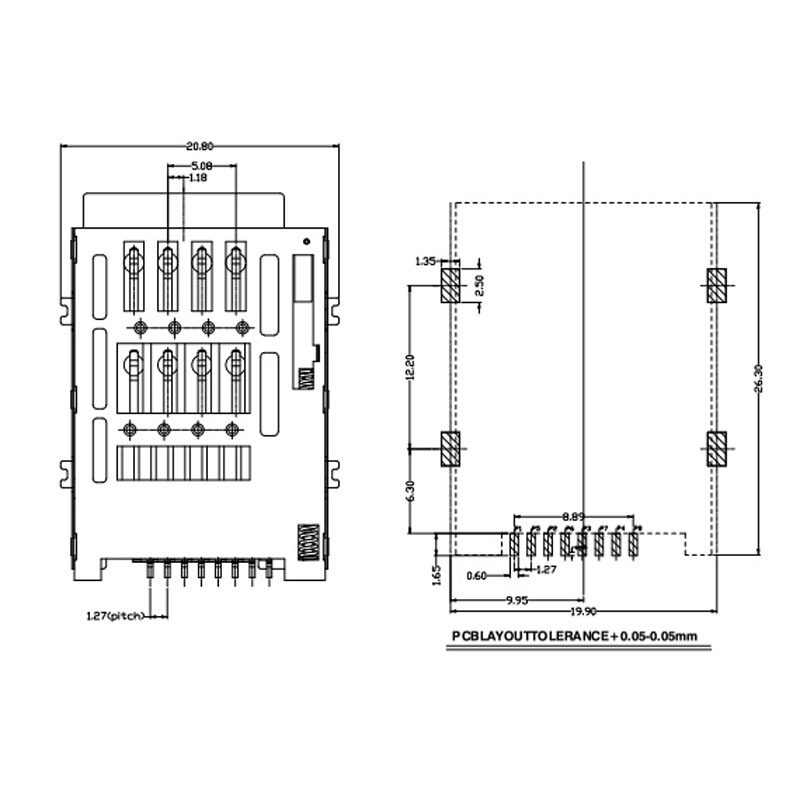 SIM card holder self-bouncing 8P eight-pin communication mobile phone small card pop-up PUSH seat card slot 8Pin