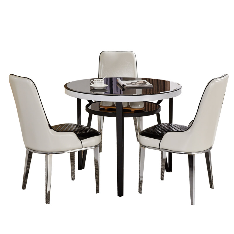 One table and three chairs (black and white), one table and three chairs (pure white), one table and four chairs (black and white), one table and four chairs (pure white), one table and one chair (black and white), one chair (pure white)