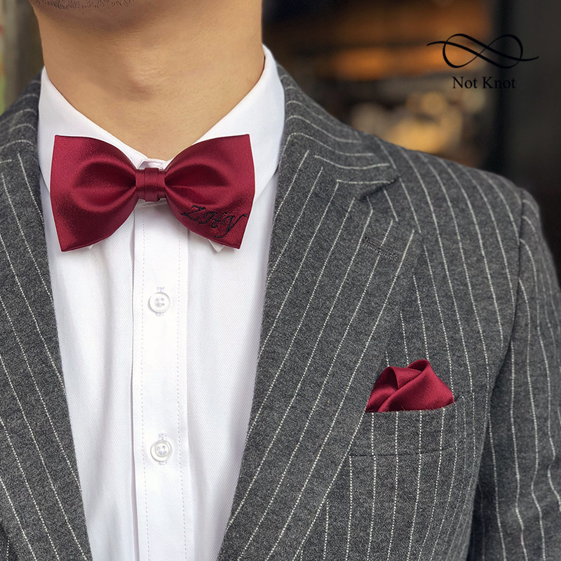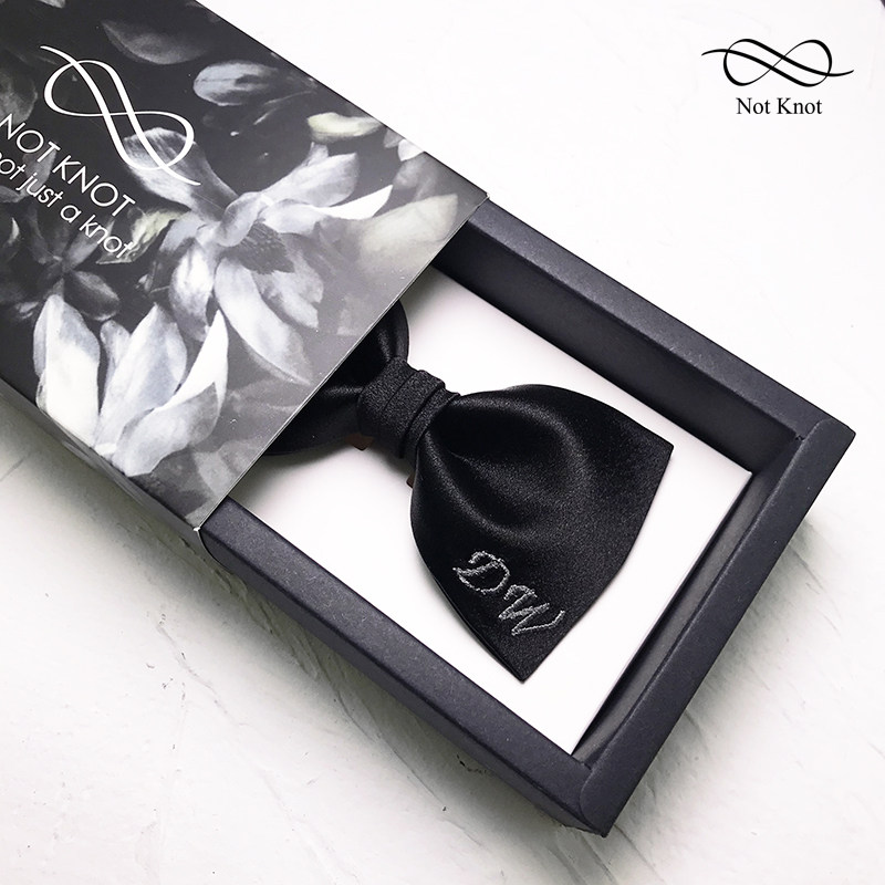NOTKNOT Custom Embroidered Letters Wedding Bow Tie Wedding Groom Best Man Gift England Bow Knot Gift Box
