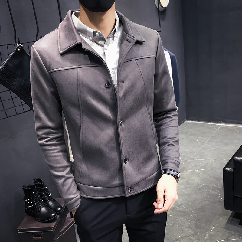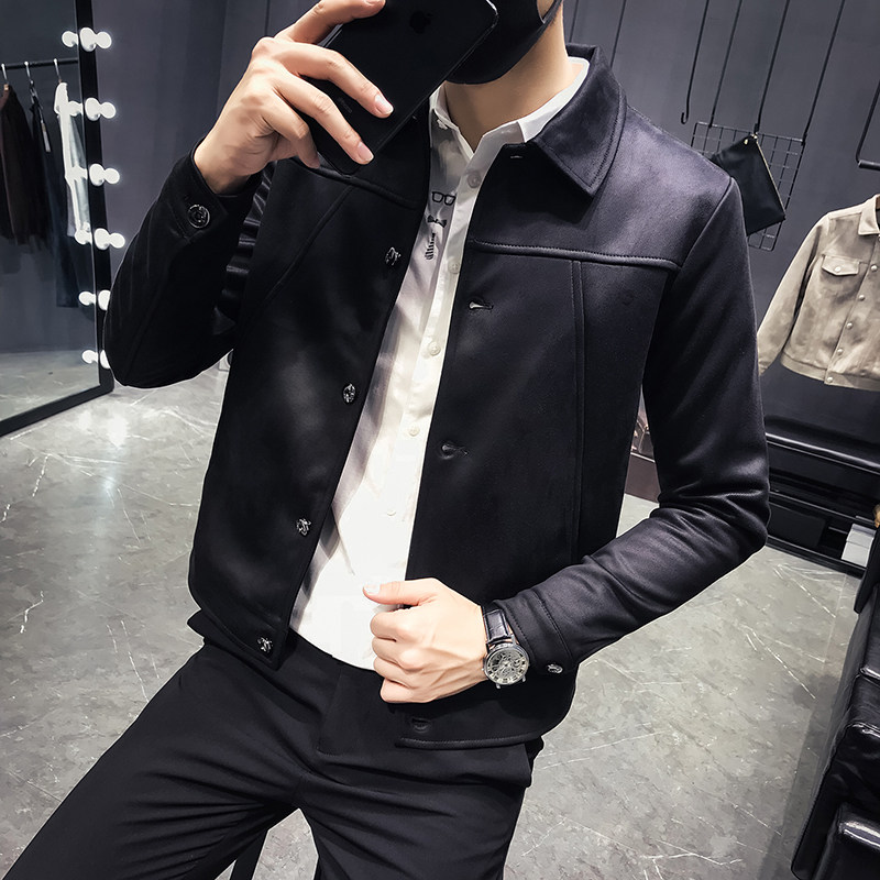 Men's jacket fall 2021 Winter fit Korean version trend handsome suit collar type deer leather suede jacket for suede suede