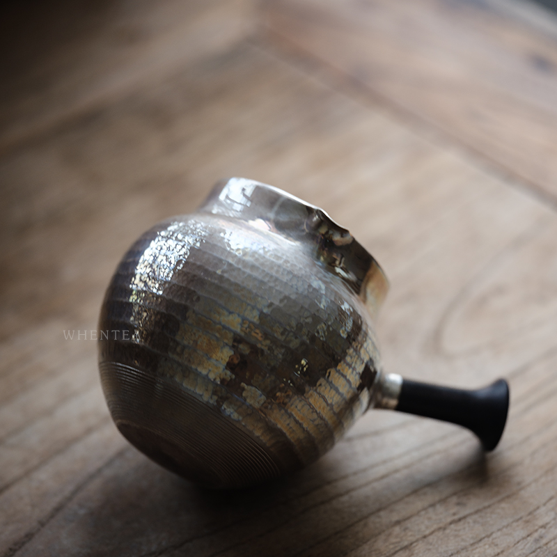 Wen said) sterling silver side handle justice cup hand punched out sandalwood handle Japanese kung fu tea set male cup