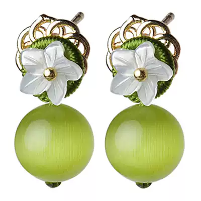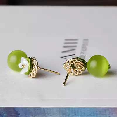 Retro cold wind earrings small fresh forest green anti-sensitive avocado color earrings female temperament wild ethnic style