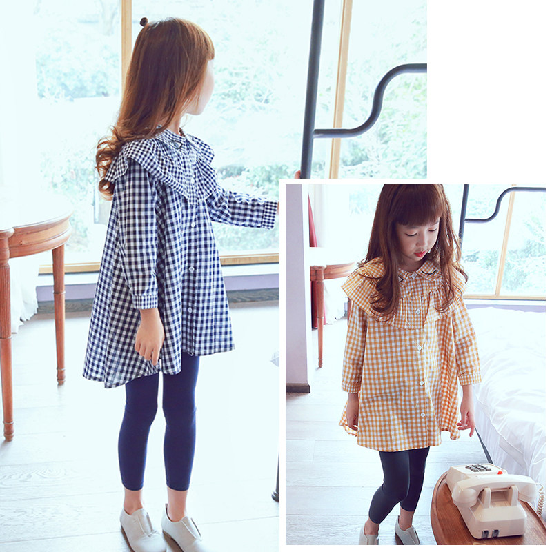 Girl Plaid Shirt 2022 New Korean version of the Korean version CUHK Scout Han version Lining Lotus Leaf edge Tide Thin Long Sleeves