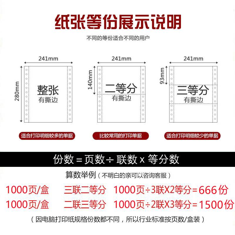 Pin-type computer photocopy paper triplex bisects the two-union quadcopter 5-lotus-trived 241-3-241-3 three-link single invoice list of incoming goods credentials Erlianz One bisected tandem paper can be customized for printing