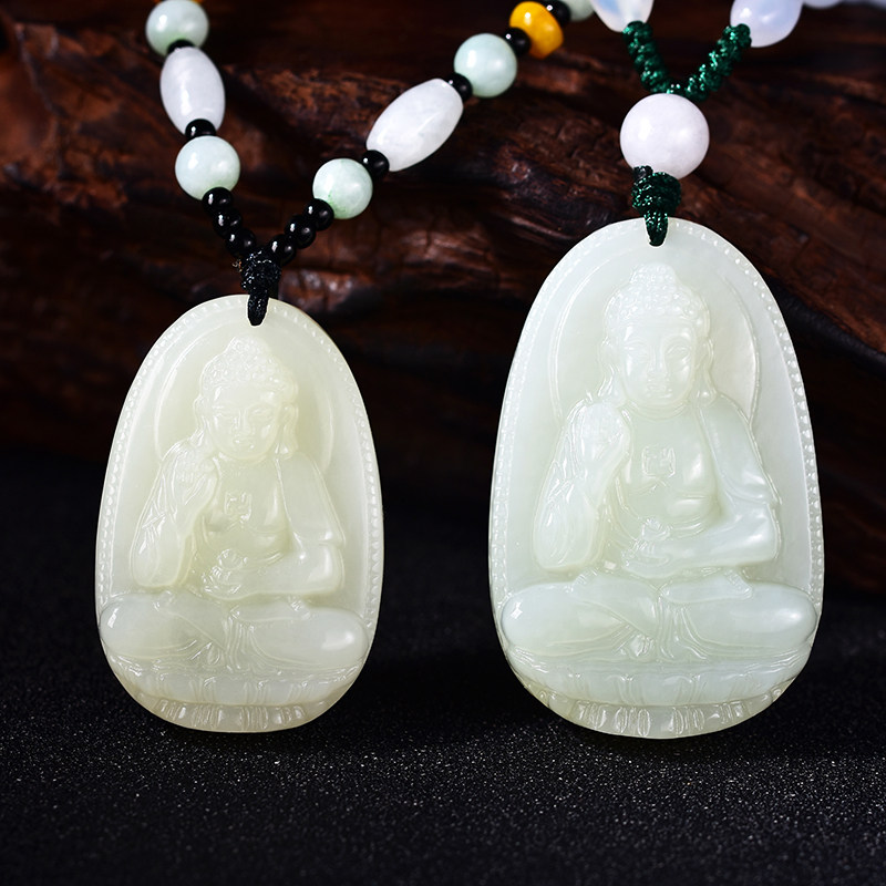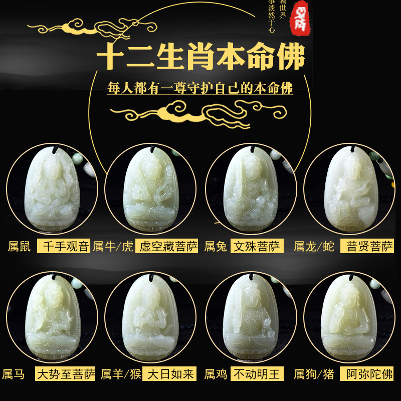 Hetian Yu Honmei Buddha Pendant Manjushri Puxian Pusa Void Hidden Bodhisattva Buddha Statue belongs to the Bull Tiger Dragon Snake Jade Pendant Male and Female