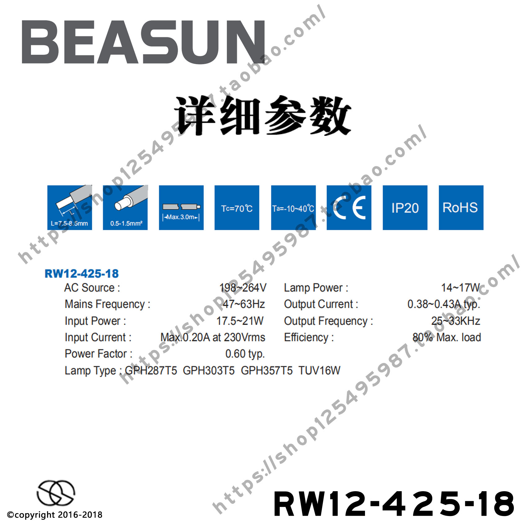 BEASUN Baishun RW12-425-18 UV lamp dedicated electronic ballast rectifier 11-18wce certification