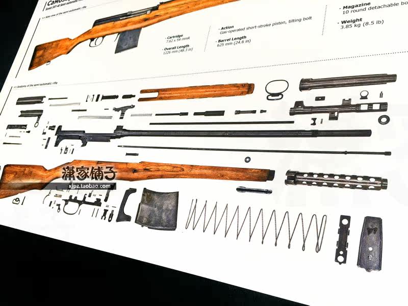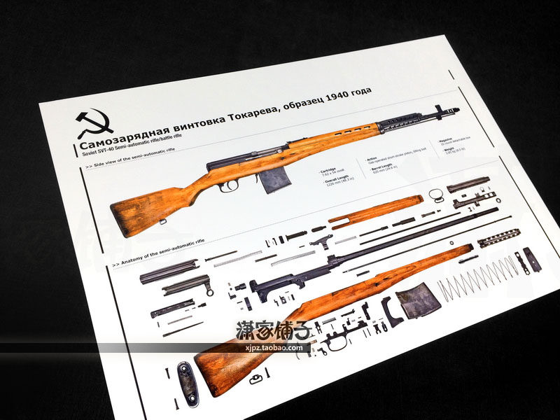 Soviet SVT-40 semi-automatic rifle firearms map firearms structure map collection wall chart poster decoration painting