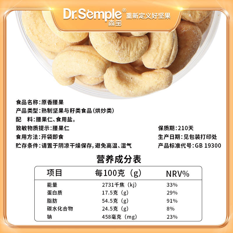Senbao original fragrant salt ovens with cashew nuts 500g Vietnam Nuts Dried Fruits Snack Fruit Nuts Dry Goods Small Package Nut Bagged
