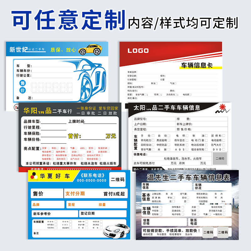 Secondhand Vehicles Vehicles Information Sheet Car Quotation Cards Car Line Selling Car Configuration Card Second-hand Car Paper Customizable