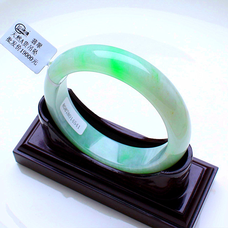 Positive circle Piaoyang green jade bracelet Myanmar Laokeng ice glutinous jade bracelet natural a goods medium and high-end round bracelet 56mm