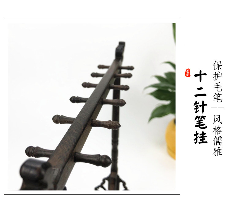 Ink Rhyme brush holder Chicken Wings Wood Pen Hanging Retro Solid Wood Brush Hanger rack 12 hanging Chinese style brief Red Wood Pen Holder show Show Show room Four Treasure Calligraphy Supplies