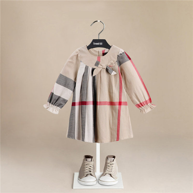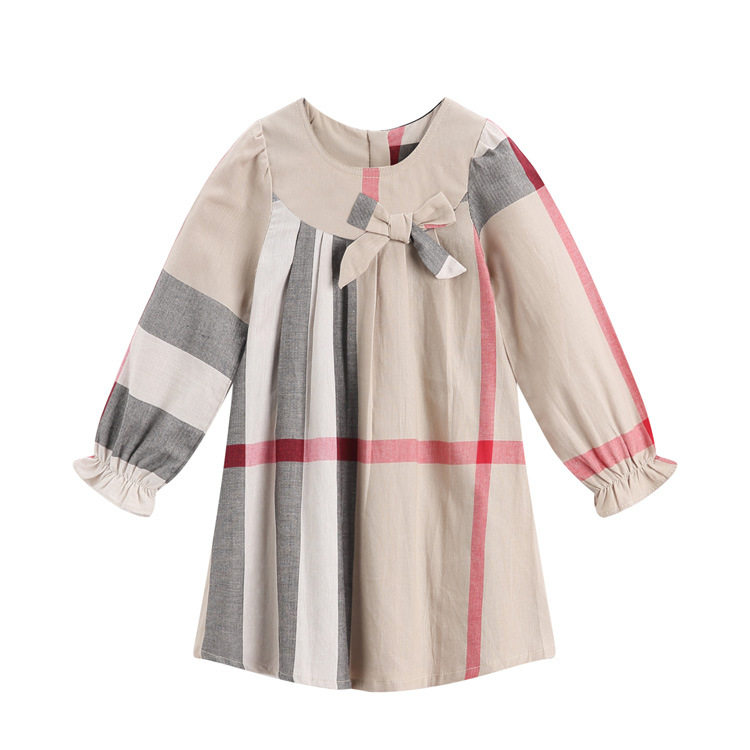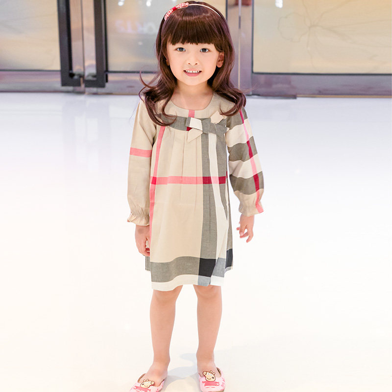 Girl girl girl baby dress spring autumn baby child pure cotton gradient dress England wind long sleeve bow dress