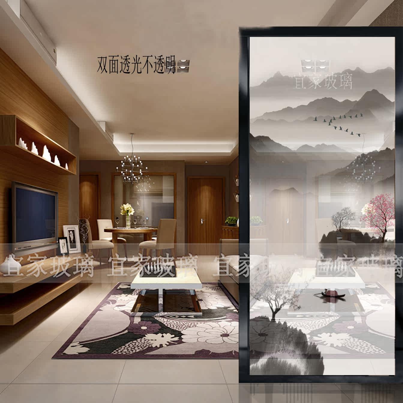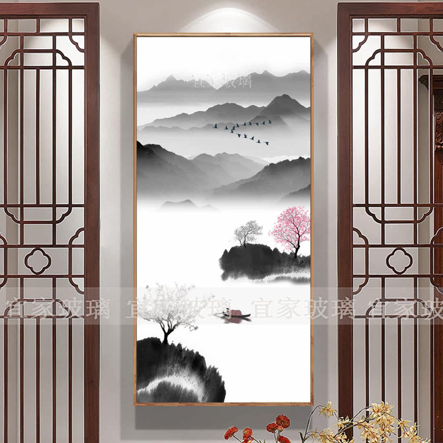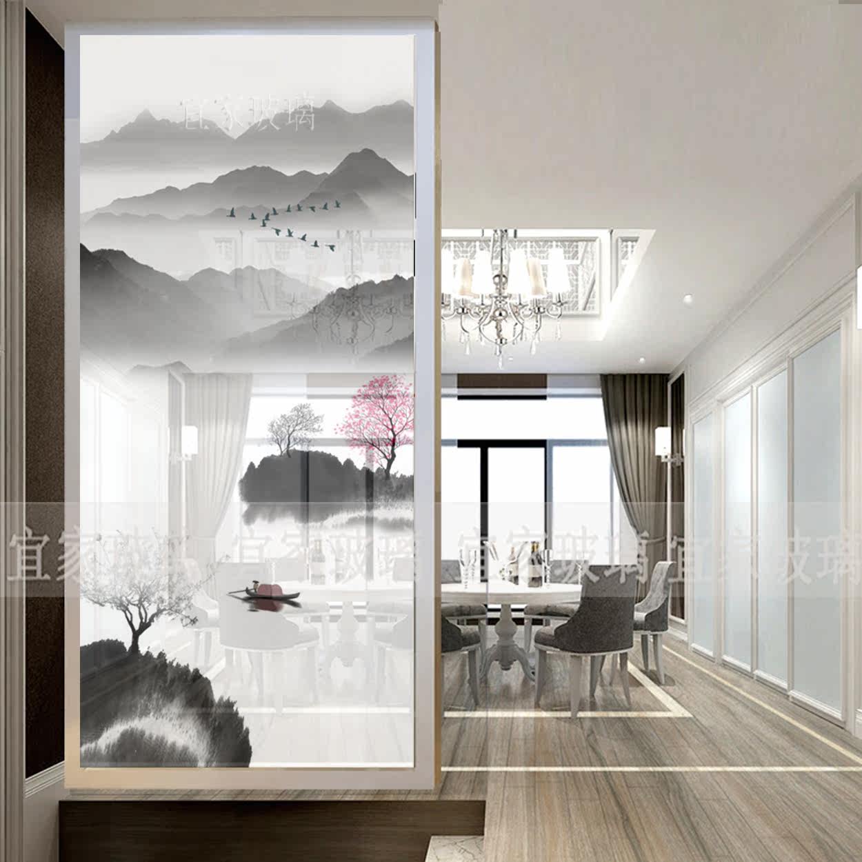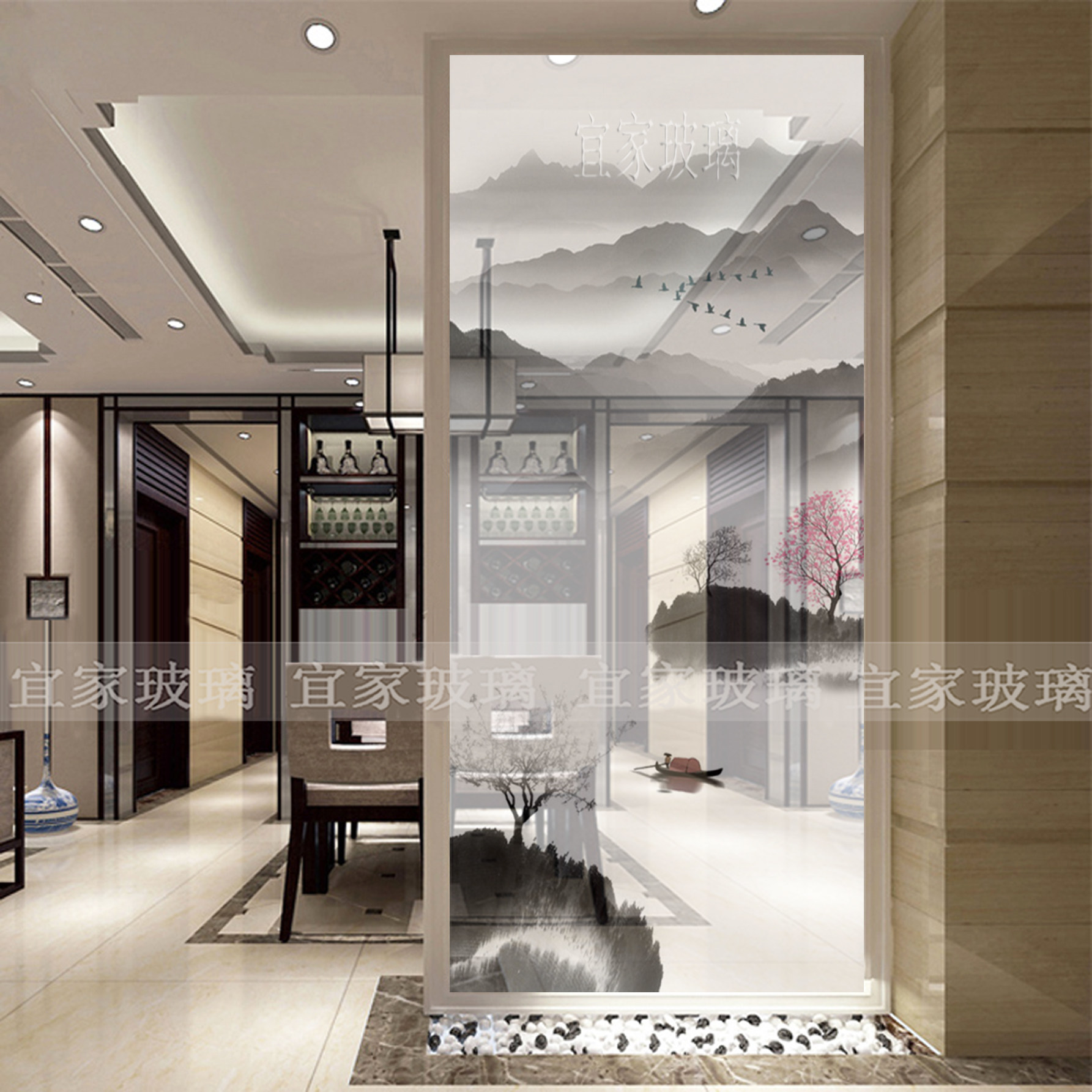 Art glass jacket jacket porch partition screen moving door background wall mountain water new Chinese modern