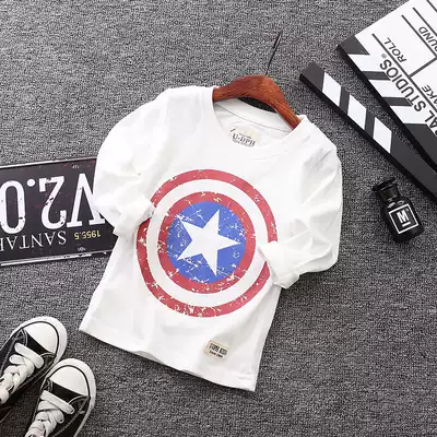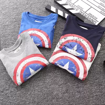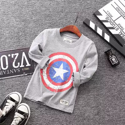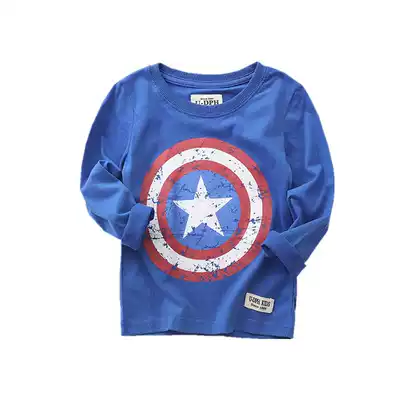 Spring and Autumn Children Boys' America Captain Cotton Long Sleeve t Sleeve Mid-Big Children Autumn Dress Thin Top T-Shirt base shirt