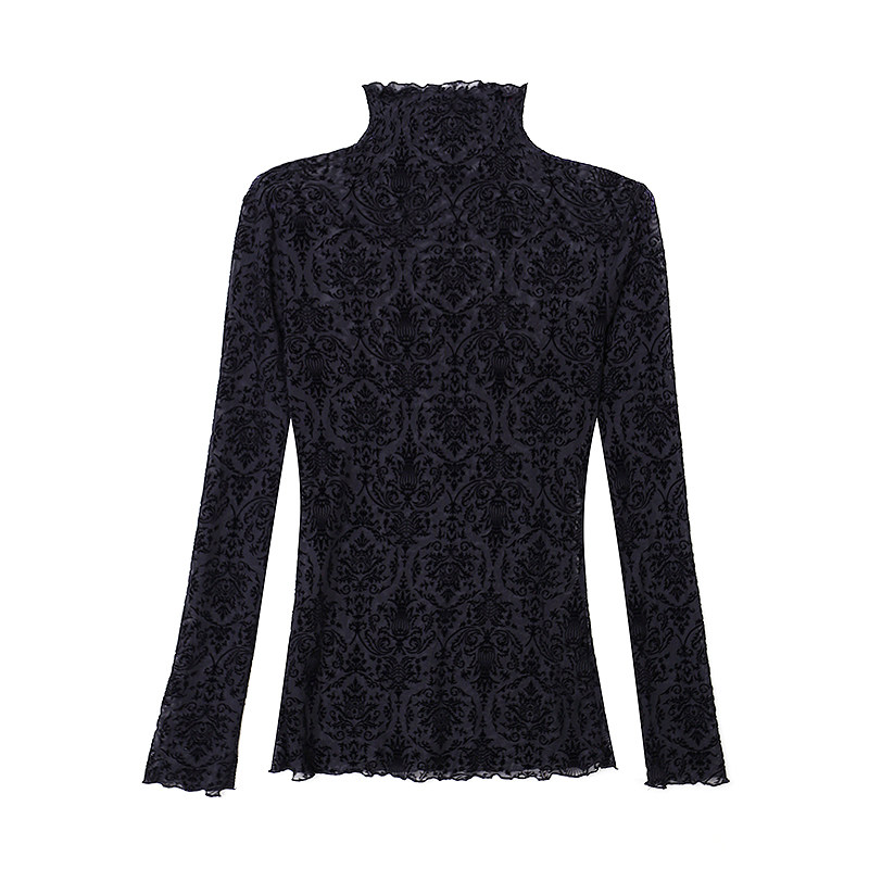 2020 Spring and autumn new fashion women with slim and long sleeves High collar 100 hitch up for body mesh yarn blouses