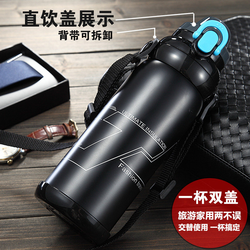 Thermos MEN's LARGE capacity THERMOS STUDENT STAINLESS STEEL WATER CUP Women's Outdoor Portable Children's KETTLE 800ML