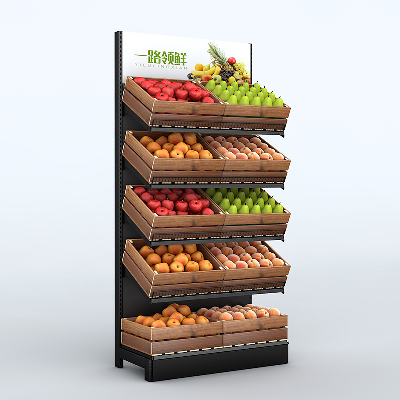 Supermarket steel wood fruit shelf display rack vegetable shop fresh shop display shelf fruit and vegetable rack creative multi-layer container