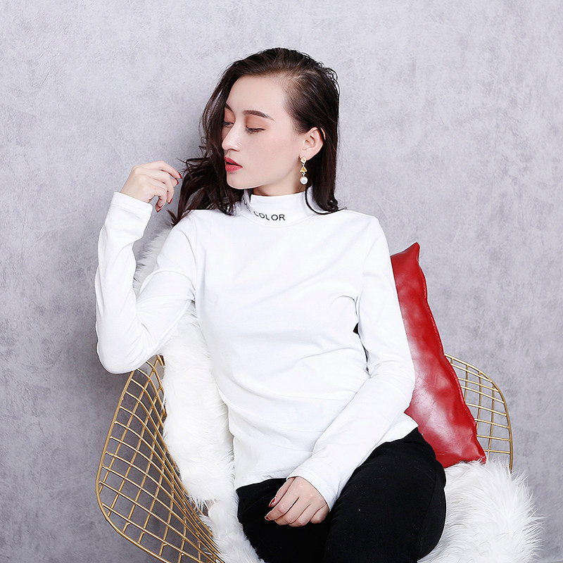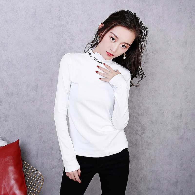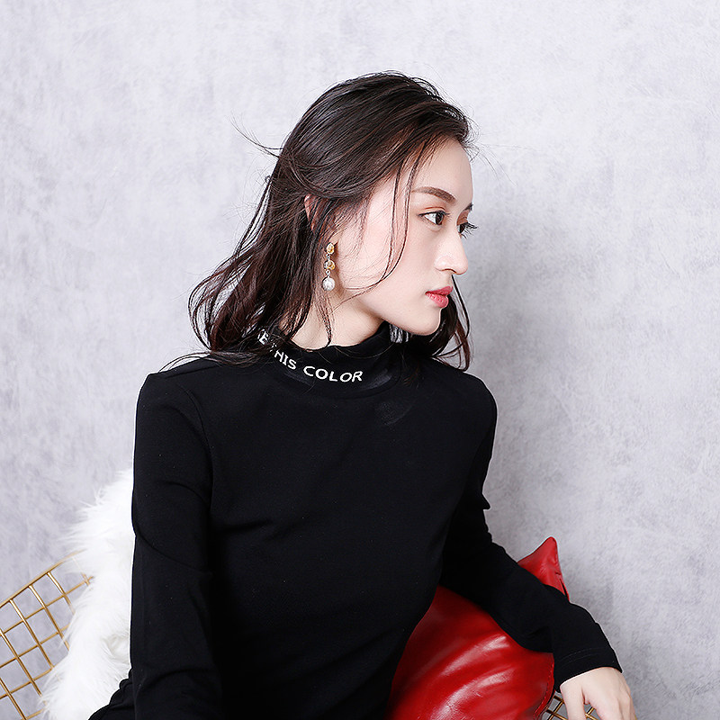 2020 spring summer new European station women black white long sleeve T-shirt letter 100 hitch bottom cotton sashimi blouse