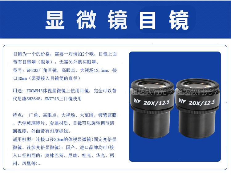 ZOOM645 microscope WF20X 12 5 large field of view adjustable eyepiece 30mm Nikon Jiangnan Yongxin