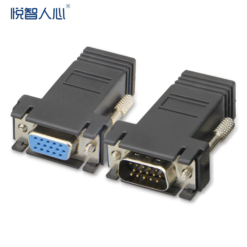 Pleasing Man Heart VGA turn RJ45 Internet interface network route connector VGA male and female head signal conversion head extended display computer TV projector display film adapter high-definition connection line