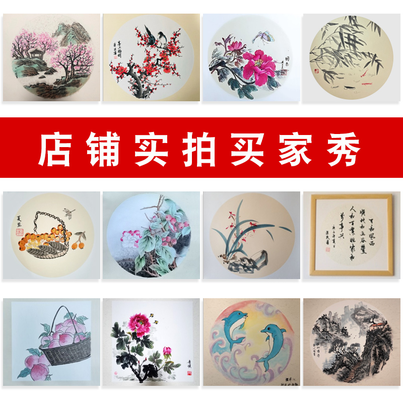 Jiang Zuoxuan Paper State Painting Thickened Cardboard Lenses Raw Rice Paper Art Brush Calligraphy Painting Works Special Children Semi-raw Cooked Free Framed Fan Face Round Soft Card Blank Stroke Cooked Catharlar Mirror Surface