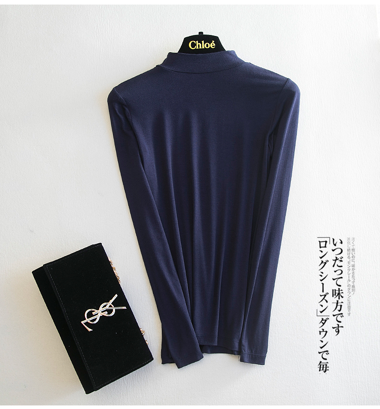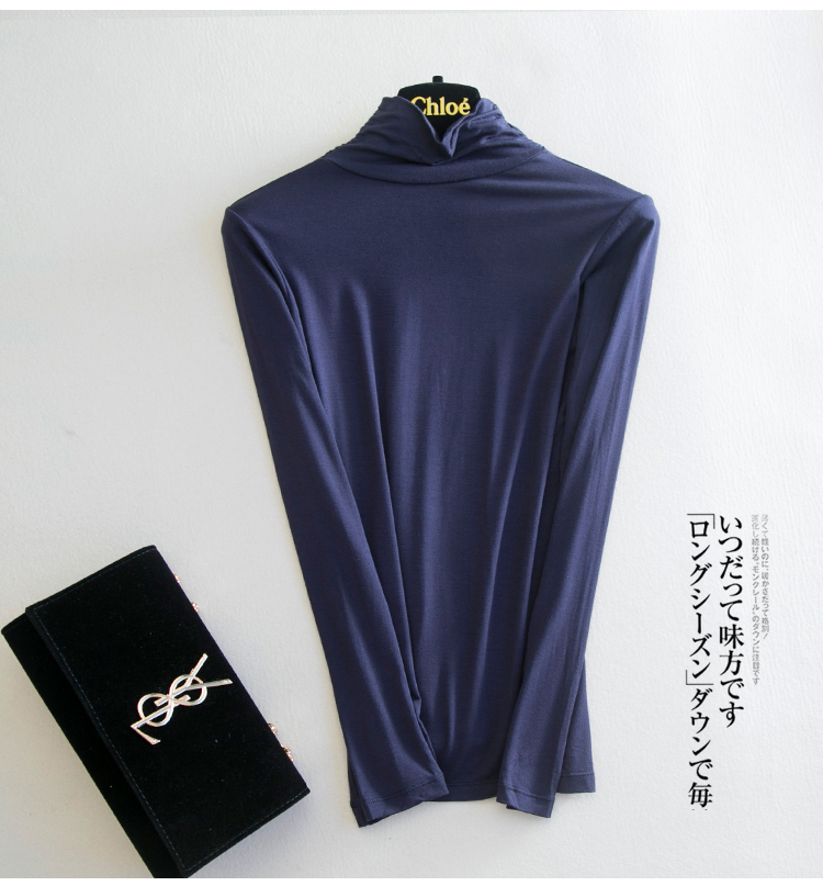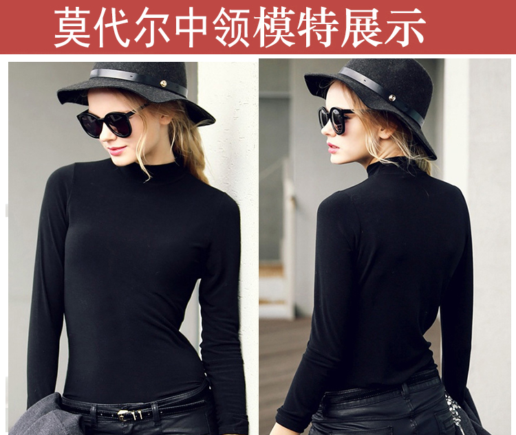 Black Modale Half High collar Long sleeves Nets T-shirt woman slim fit chic female body elastic blouse undershirt autummy jacket