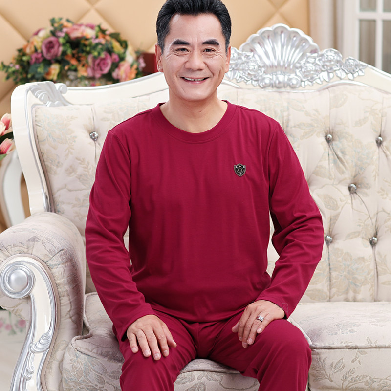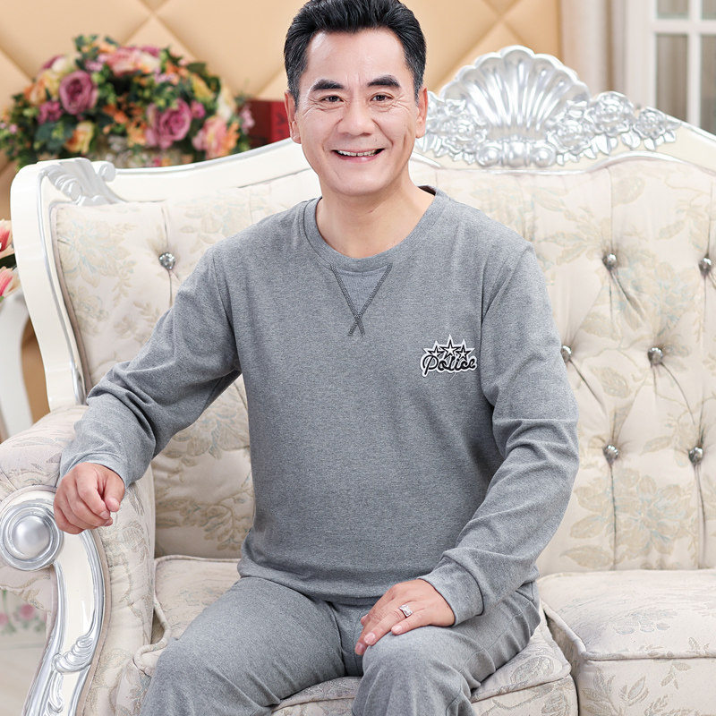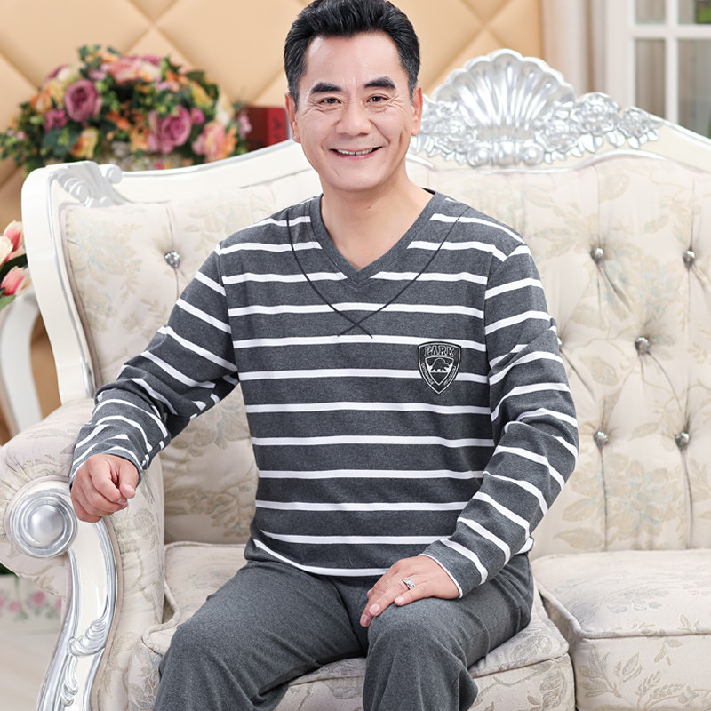 Middle Aged Sleepwear Men's Spring Autumn Season Pure Cotton Overweight Code Seniors Dad Long Sleeve Full Cotton Winter Home Suit Suit