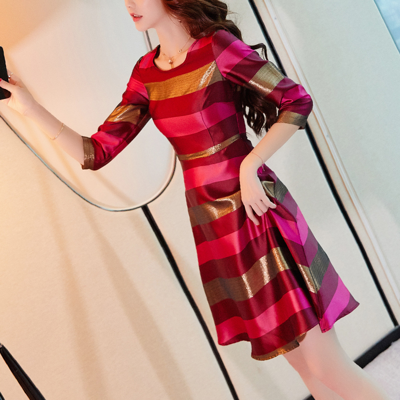 2022 New Women's Spring Dress Skirt Design Sense High Waist Leisure A- character Striped Dress for Formal Occasions