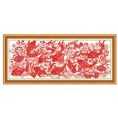 Accurate printing cloth, cross stitch, paper-cut fish, rich and more than nine fish pictures, fish pictures, nine fish Jufu silk thread