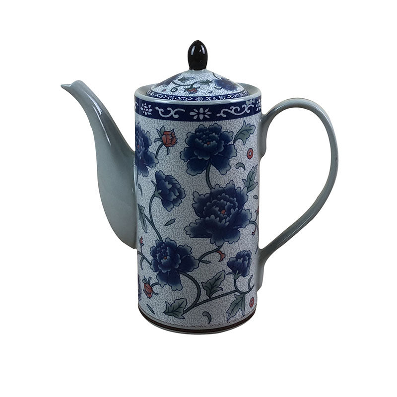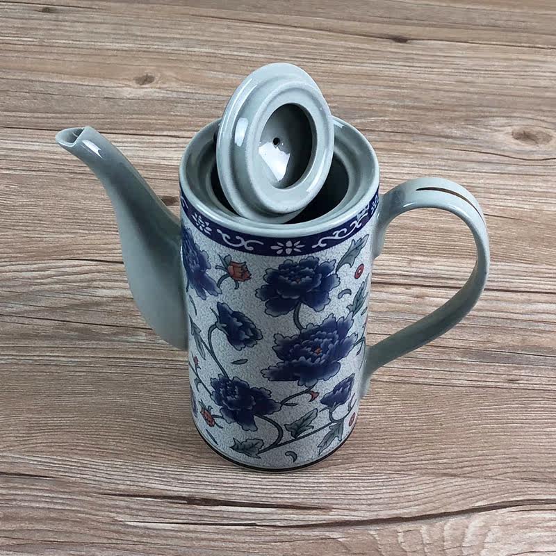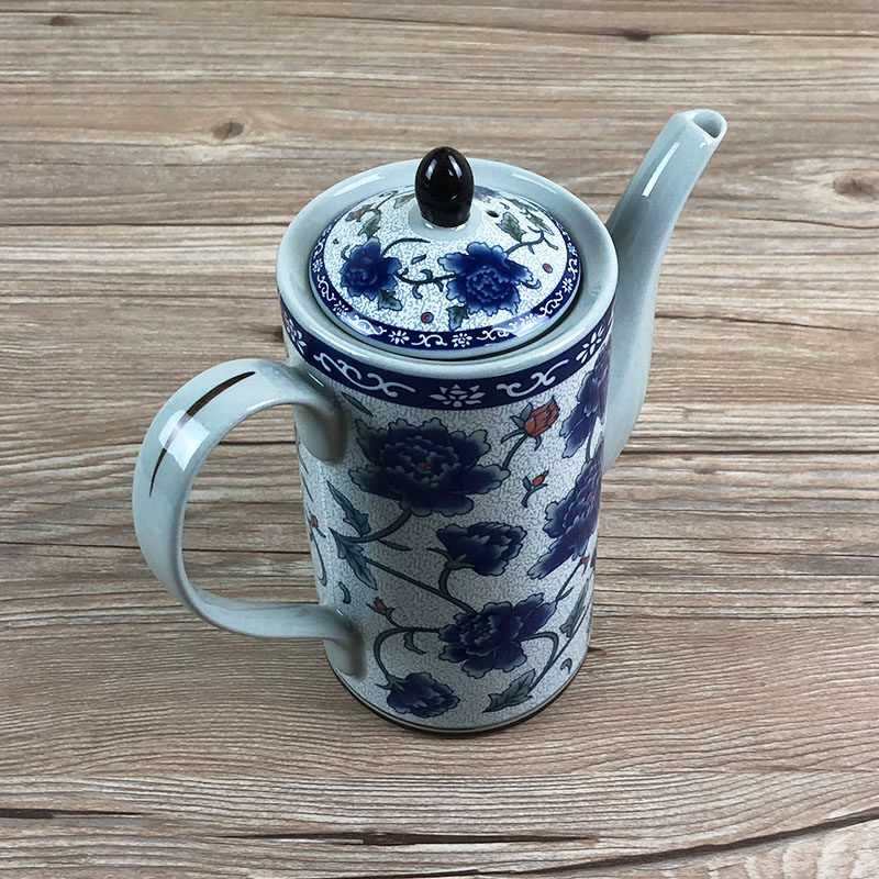 Peony Flower Ceramic Bubble Teapot Single Pot Home Hot Water Kettle Long Mouth Eurostyle Green Flower Porcelain Straight Body Pot Hotel With Pot