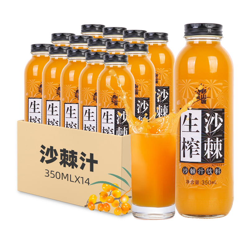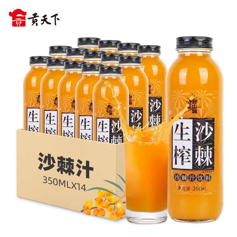 Gong Tianxia Preferred Wild Mountain Slope Sea Buckthorn Juice 350ml * 14 bottles of Shanxi specialty Lujin pressed sea buckthorn juice beverage