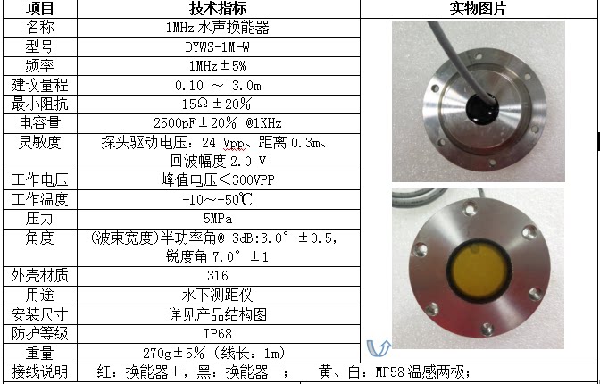 Ultrasonic underwater rangefinder underwater measuring instrument Stainless Steel Sensors transducer Monitor DYWS-1M-W