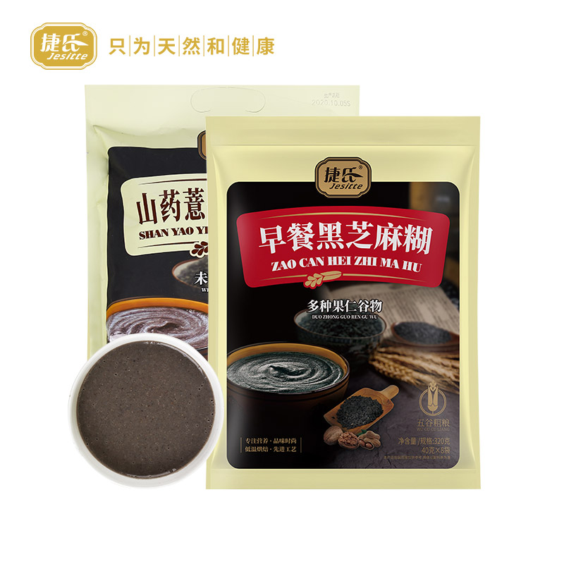 Jie's yam, black sesame, breakfast, whole grains, nutritious breakfast brewing drink, 320g bagged meal replacement ready-to-eat