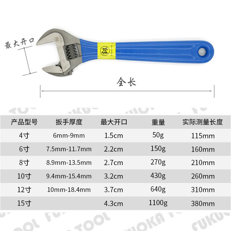 Japan Fukuoka Industrial Class Active Board Hands 4 Inch Small Adjustable Wrench 15 Inch Large Living Mouth Wrench Quick Wrench
