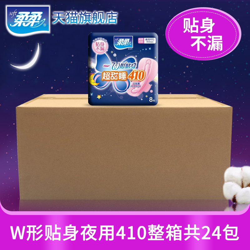 Soft-soft-shaped close-fitting 410mm anti-side leakage no fluorescent extra-long night with sanitary cotton whole box for a total of 24 packs