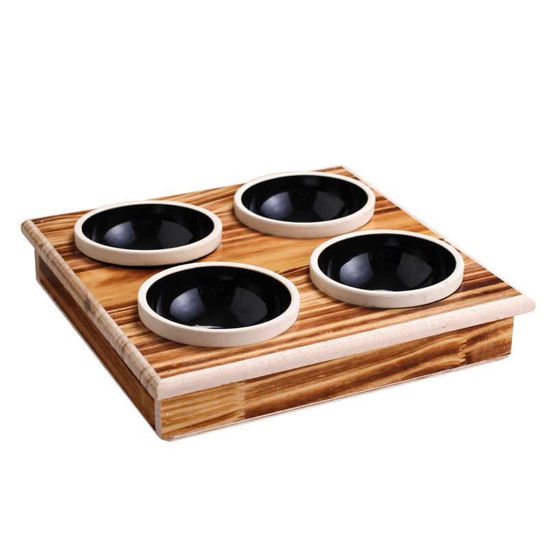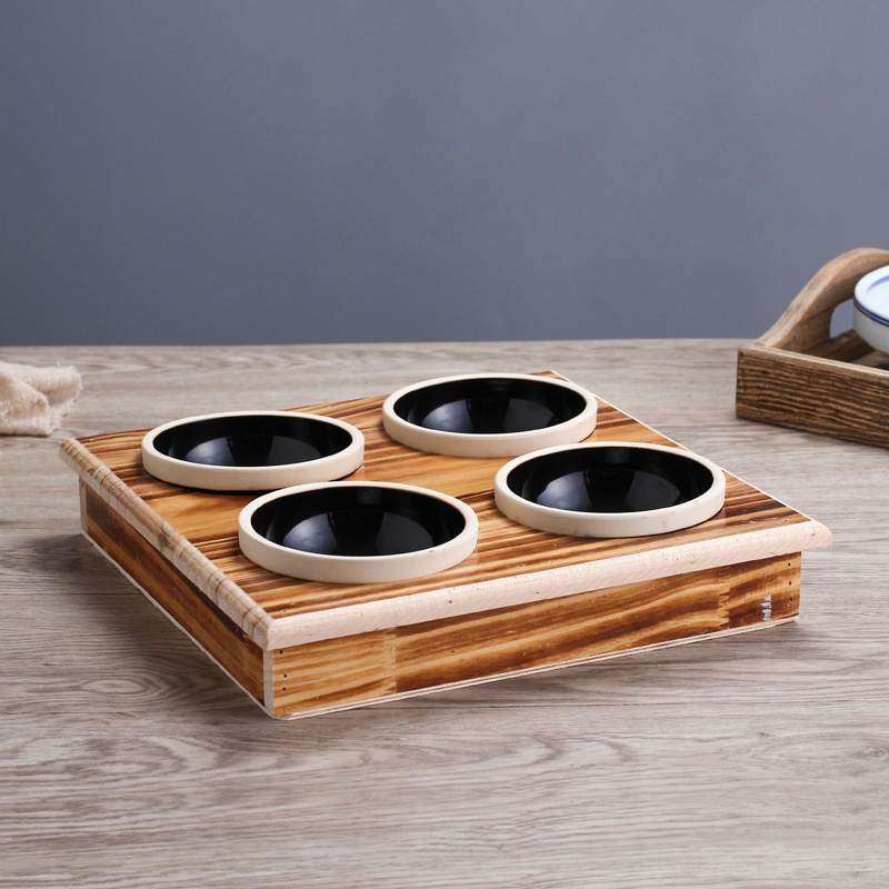 Hotel Supplies Creative Tableware Hot Pot Personalized Dishes Tray Portable Four-grid Assortment Bamboo and Wood Shabu Dish Fashion Tray