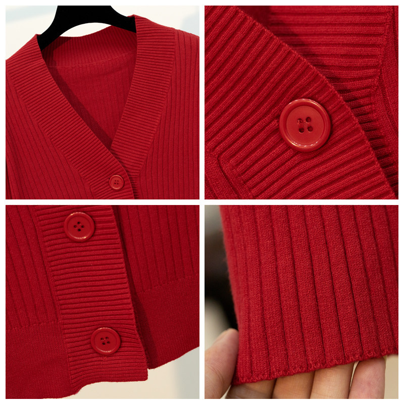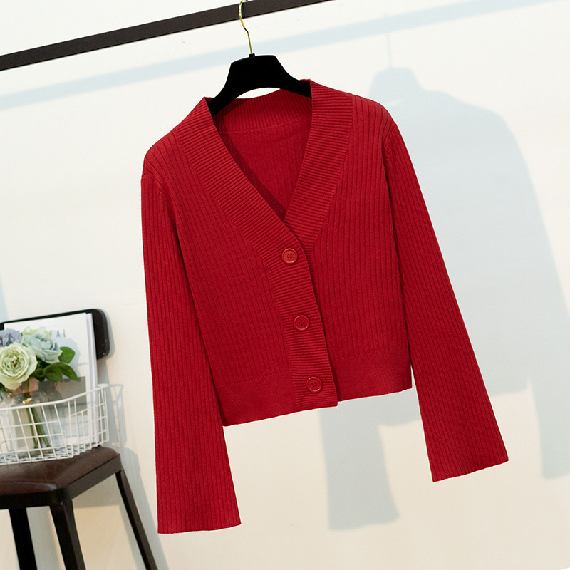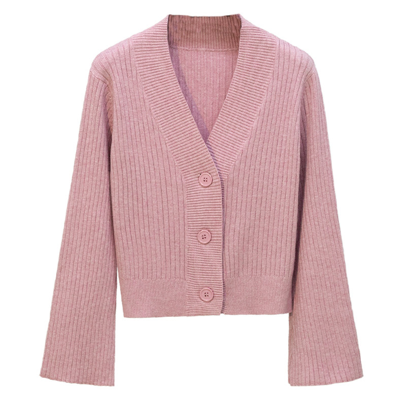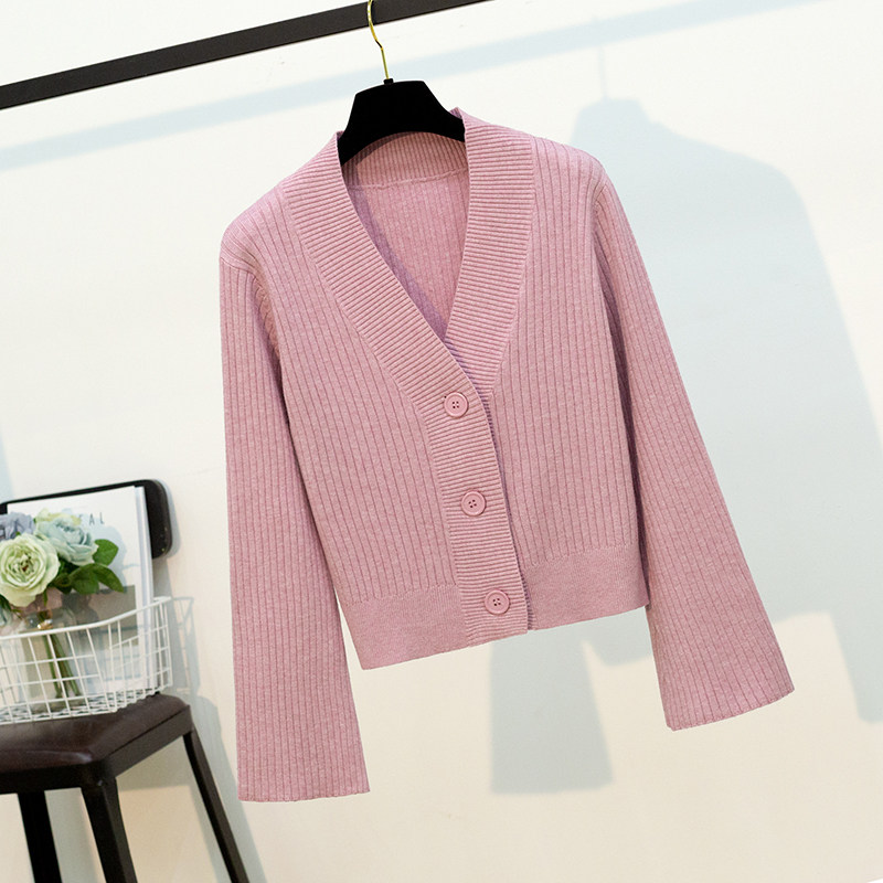 Knitted cardigan women's jacket short all-match slim Korean version small fragrance horn sleeves big button chic early autumn sweater
