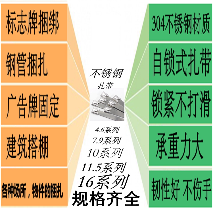 304 stainless steel self-lock type tie 4 6 * 600 marine sign plate tie strap one pull to fix the buckle base