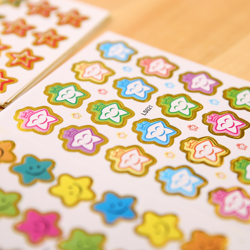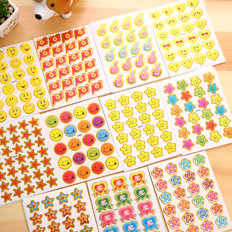 Kindergarten reward stickers Small safflower stickers for primary school students smiley face five-pointed star stickers Cartoon stickers Children's praise card