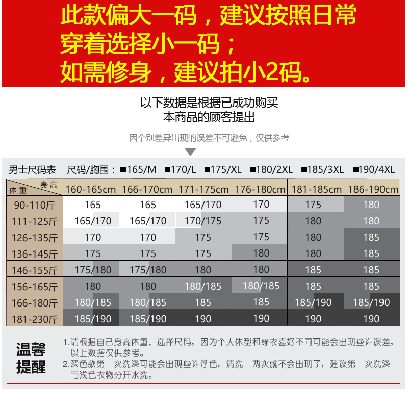 165(M) 170(L) 175(XL) 180(XXL) 185(XXXL) 190(XXXL)
