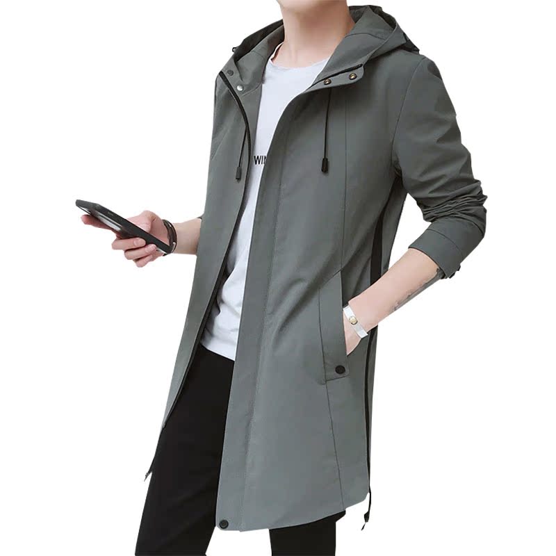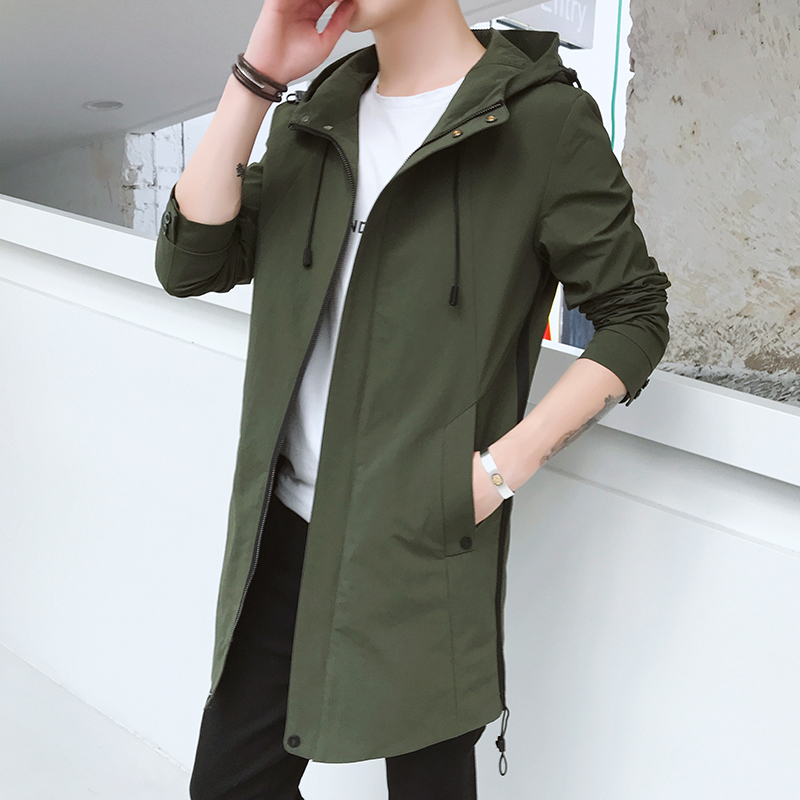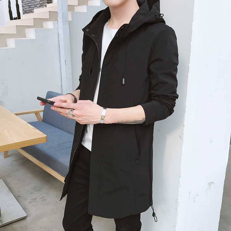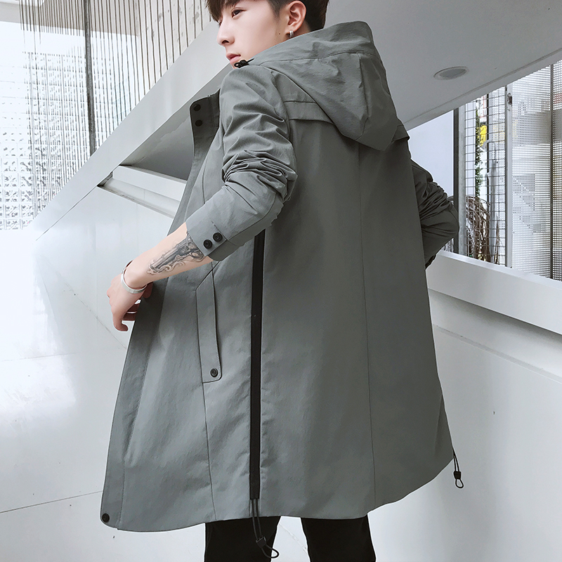 Men's jacket Spring and autumn season Winding men's medium long version with cap trend handsome and casual spring dress jacket men's body blouses